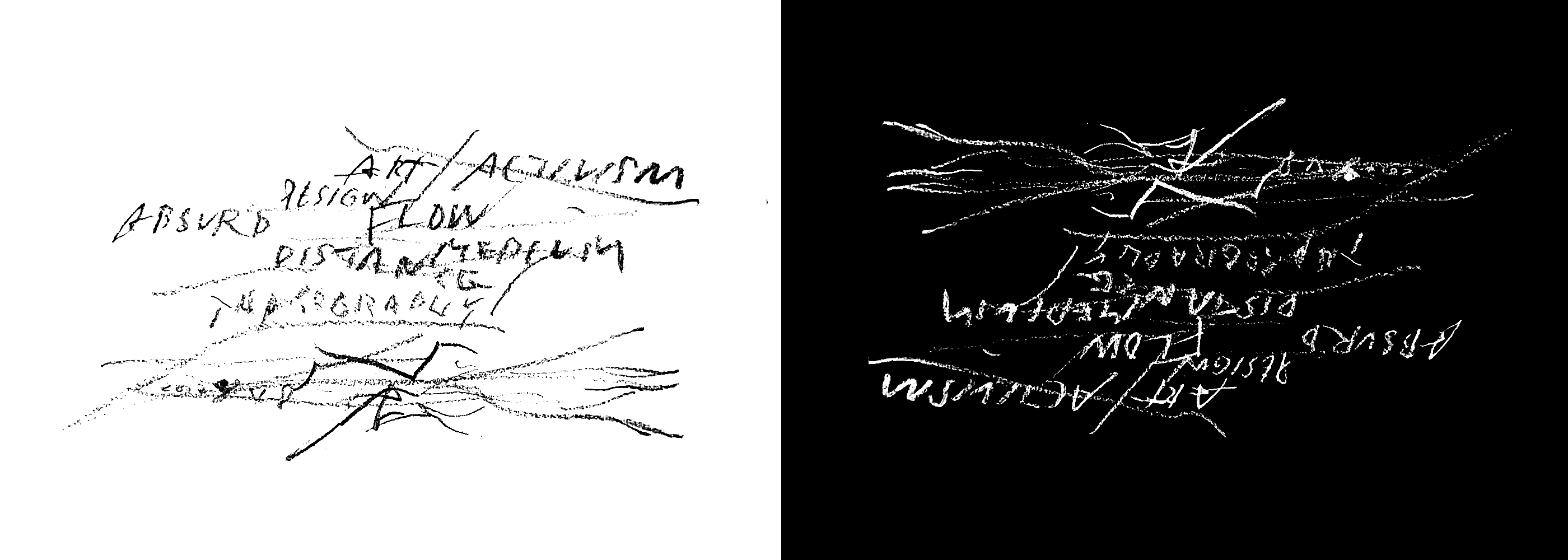 11/2 フロッタージュ、鉛筆を面的に使って紙上と紙下の凹凸を拾う。偶然を画面に拾い上げる。メディアの特性を活かす。画面は、3次元的な奥行き、というファンタジーを生み出す投影体になることもあれば、フロッタージュのように、その平面性を誇示することもある(考えてみれば、読書は画面の平面性に依拠した行為である)。私たちは、どうもそれらを複合的に組み合わせることさえやってのけている。当たり前なのに不思議な見る力、描く力、あるいはイメージの力。画面に相対する私たちにまつわる、自在なさまざまの変化を、あらためて考えるきっかけ作りを試みる。