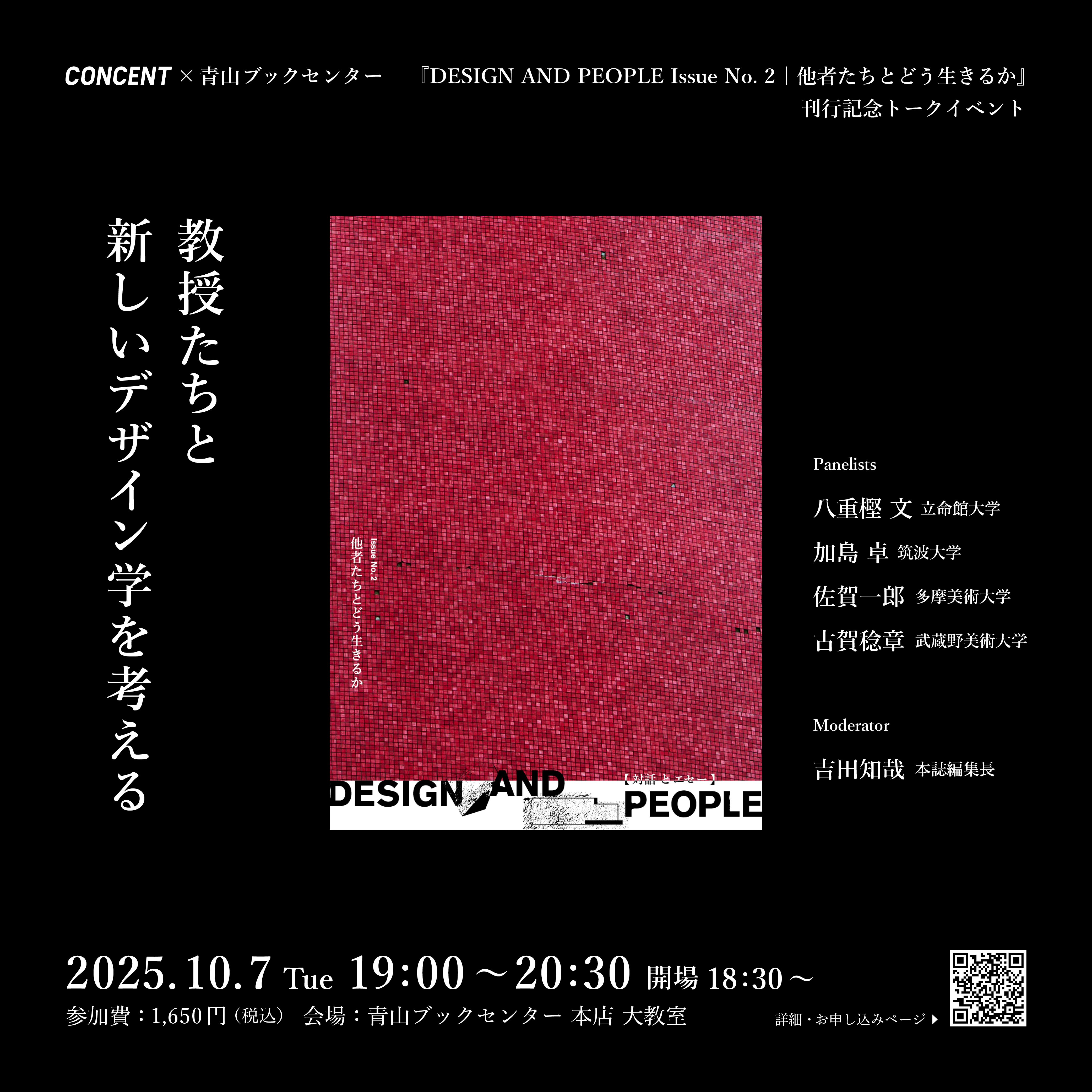 8/10 吉田知哉さんが編集長を務める本『DESIGN AND PEOPLE Issue No. 1』がコンセントより刊行されました。22名によるエッセイと対話からなる256ページの本です。私は渡邊康太郎さんとの対話「生きるほうへ」とエッセイ「デザイナーの社会的責任」を通じて参加させていただきました。ありがとうございました。明日8月11日には青山ブックセンターでトークショーが開催され、そこにも登壇予定です。『DESIGN AND PEOPLE|Issue No. 1』刊行記念 ABC CROSS TALK 01 「デザインと教育、私の場合。教えること、教えられることの──」 渡邉康太郎(コンテクストデザイナー/Takram)× 佐賀一郎(デザイン研究者/多摩美術大学准教授)× 脇田あすか(アートディレクター・グラフィックデザイナー)× 赤羽太郎(サービスデザイナー/コンセント) モデレータ:吉田知哉(本誌編集長) 2023年8月11日(金)青山ブックセンター本店 時間 16:00〜17:30 開場 15:30〜 料金 1,540円(税込) https://aoyamabc.jp/products/design-and-people-1 https://newsrelea.se/BgDl1E